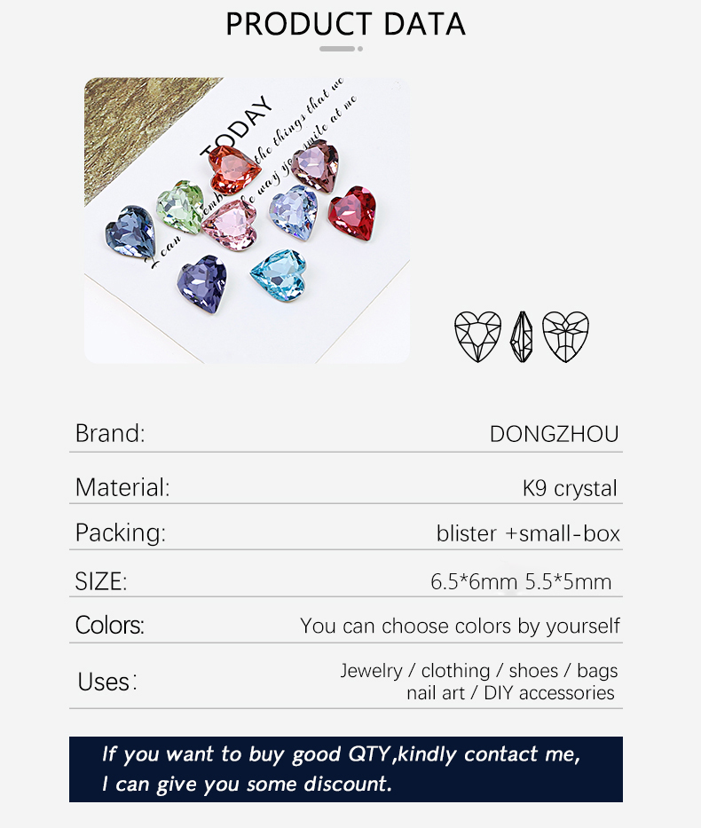 DZ 3025 6*6.6mm 5*5.5 heart shape crystal fancy stone for nail art
