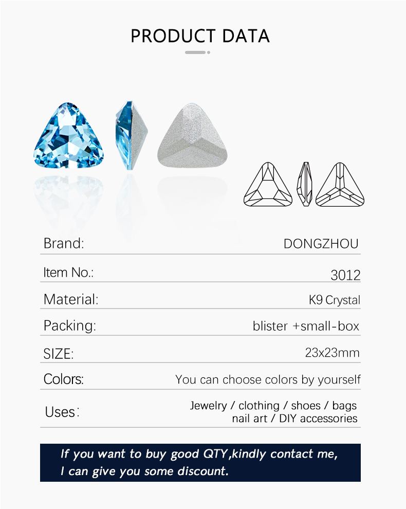 DZ 3012 23x23 mm Triangle shape crystal fancy stone