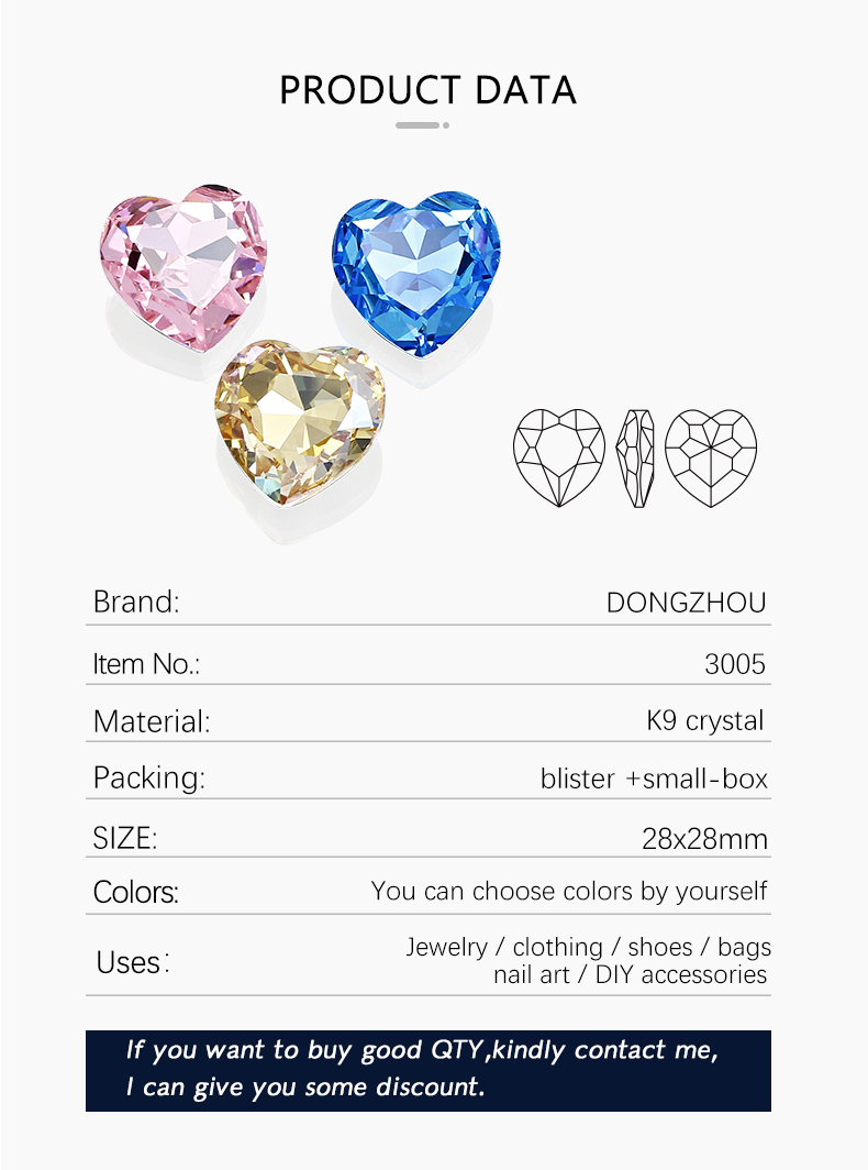 DZ 3005 28x28 mm Heart shape crystal gemstone