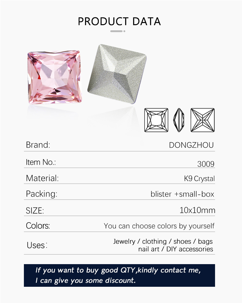 DZ 3009 10x10 mm square shape crystal fancy stone
