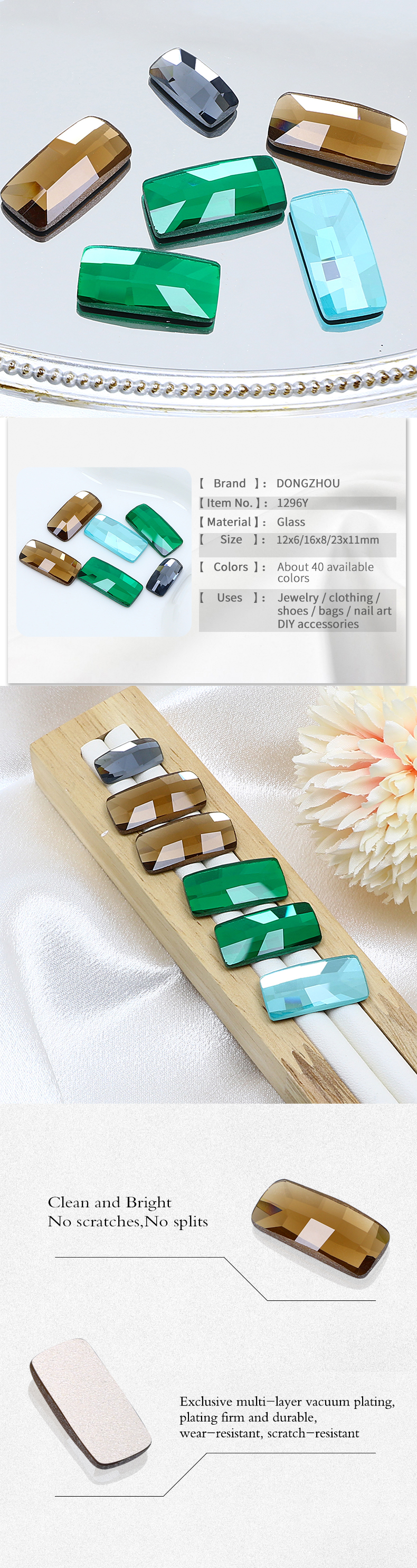 DZ 1296Y Rectangle shape flat back crystal stone