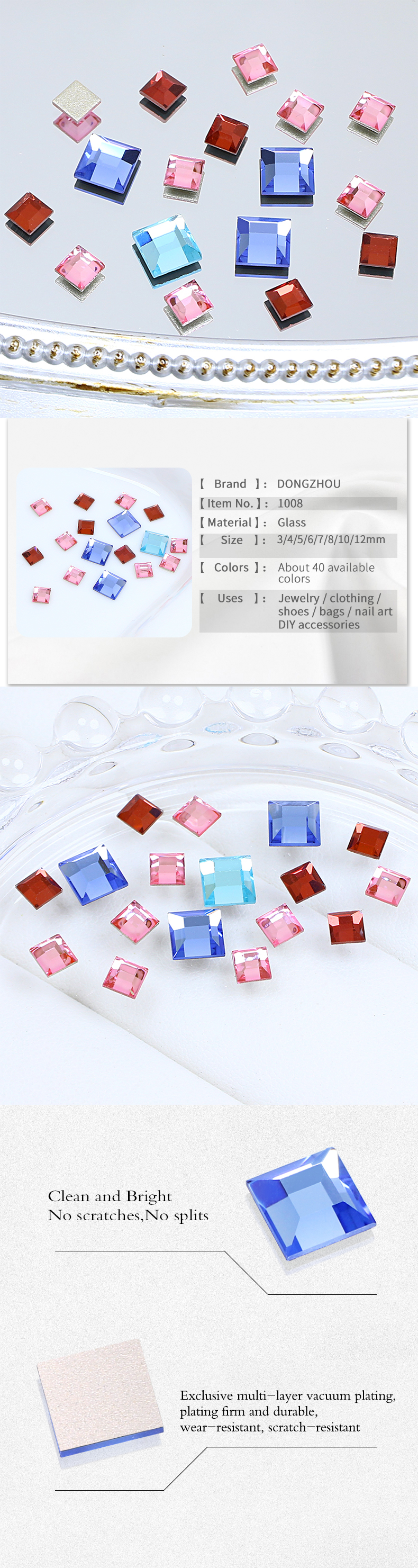 DZ-1008 square flat back fancy crystal stone for jewelry making
