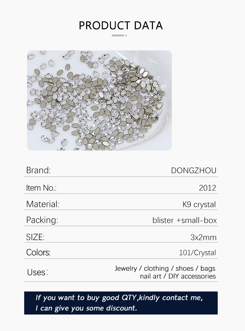 DZ 2012 3*2mm oval shape glass flatback stone for nail art (1440pcs/pack)