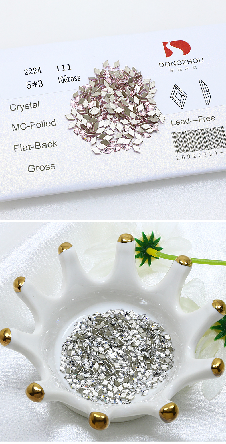 DZ 2224 5*3mm rhombus shape glass flatback stone for nail art (1440pcs/pack)